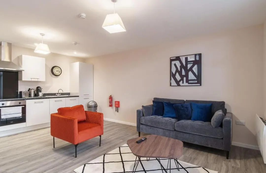 The apartment is equipped with self-catering amenities such as an electric kettle, a fridge, and kitchenware, providing guests with the opportunity to prepare their own meals. The nearest bus stop to Bright 2 Bed Apartment Manchester - Sleeps 4 is Trafford Road/Eccles New Road, which is only a 5-minute walk away.